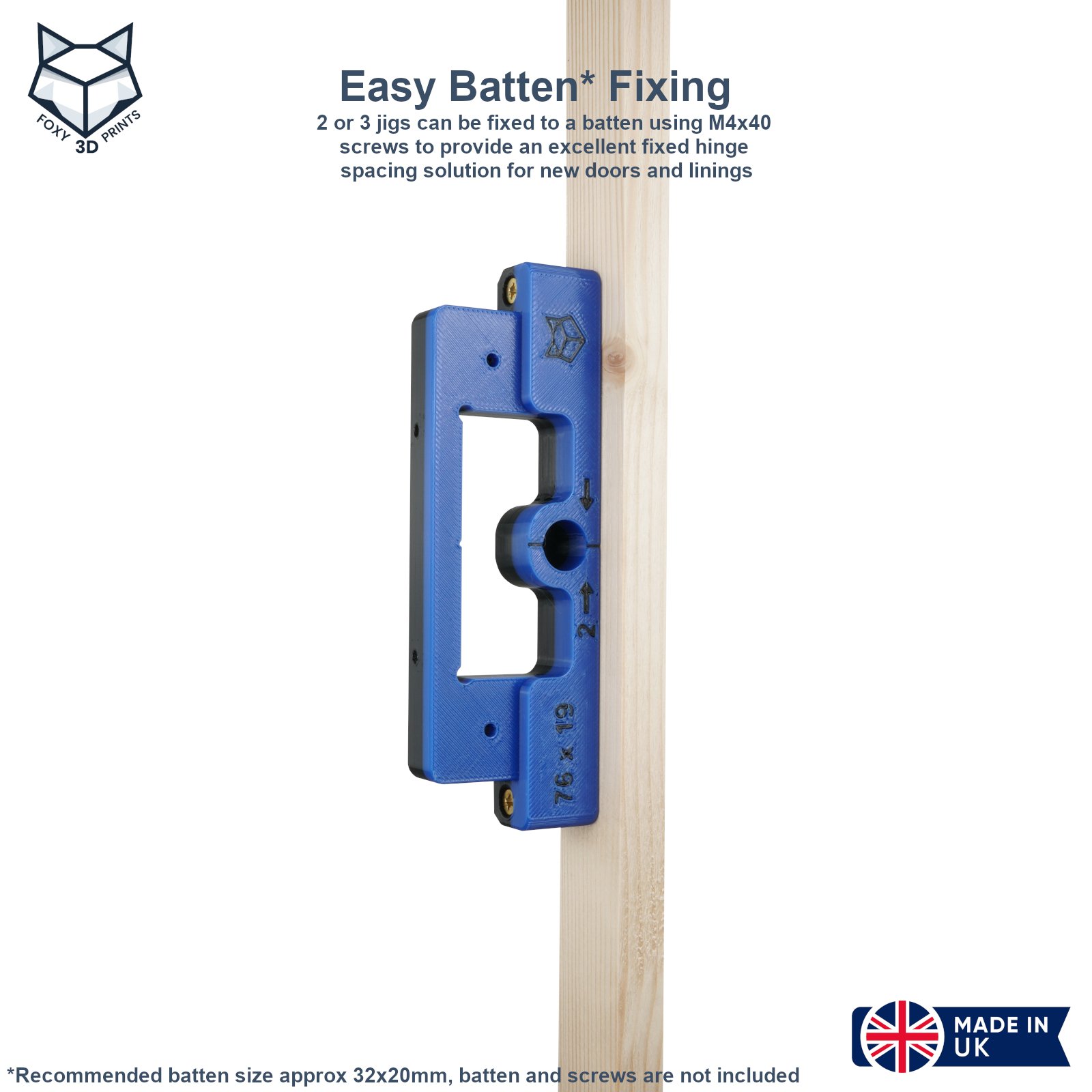 - 76 x 51 mm (blue) – For UK standard 76 x 51 mm (3 inch) hinges, recess size 76mm x 19mm, integrated 2mm cut-out depth set